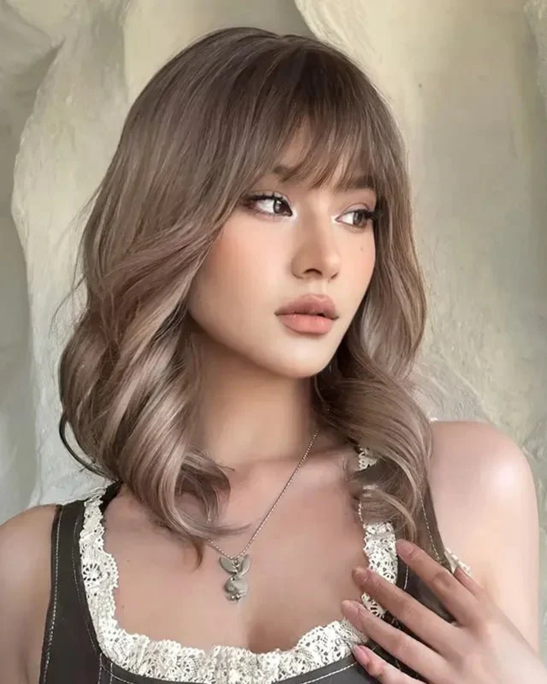 Design: Medium-length curly bob wig with soft bangs, offering a chic and versatile style for everyday wear.