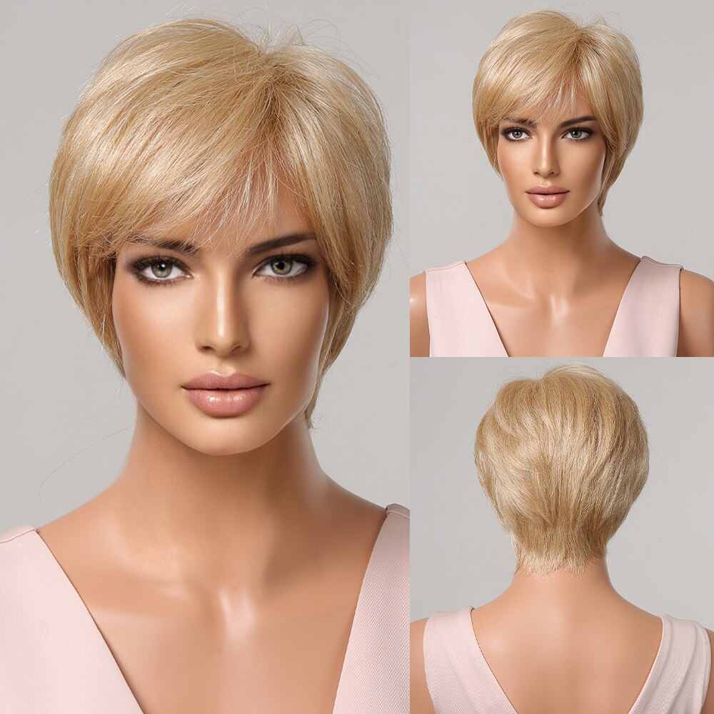 Short Pixie Blonde Silver Human Hair Blend with Bangs