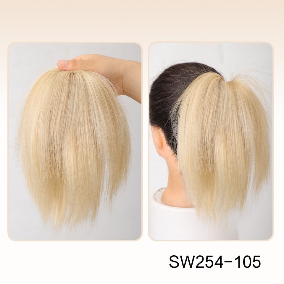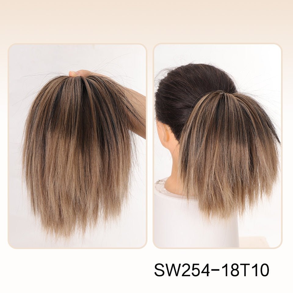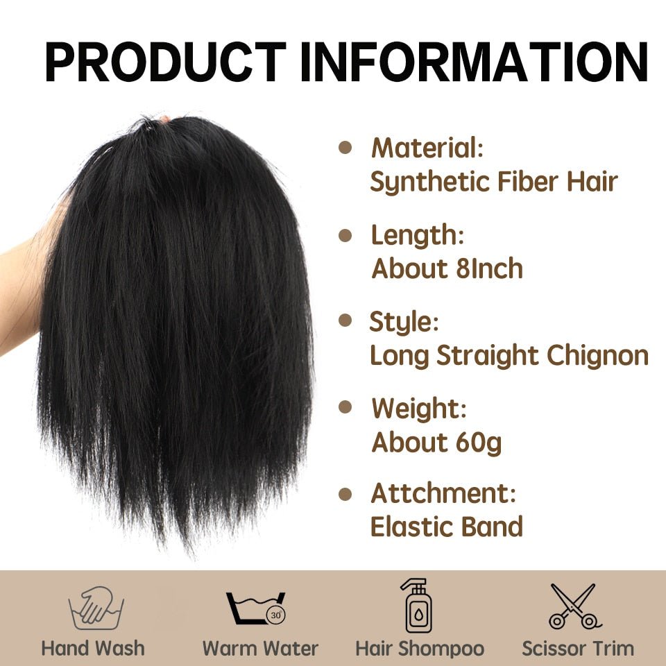 Design: Straight synthetic hair styled into a donut chignon, creating a chic messy bun with effortless volume.