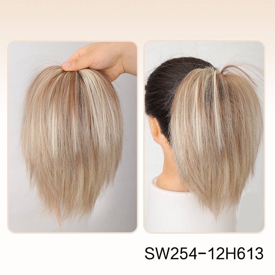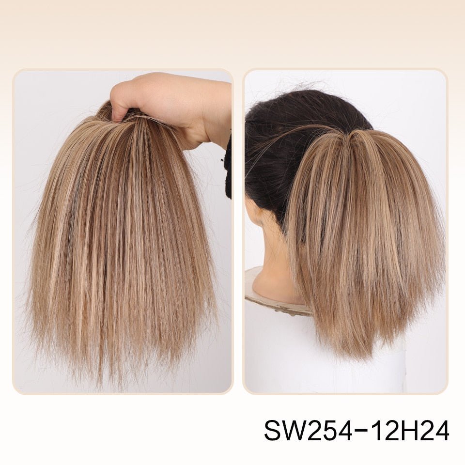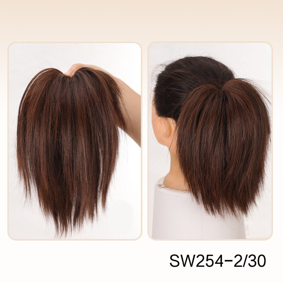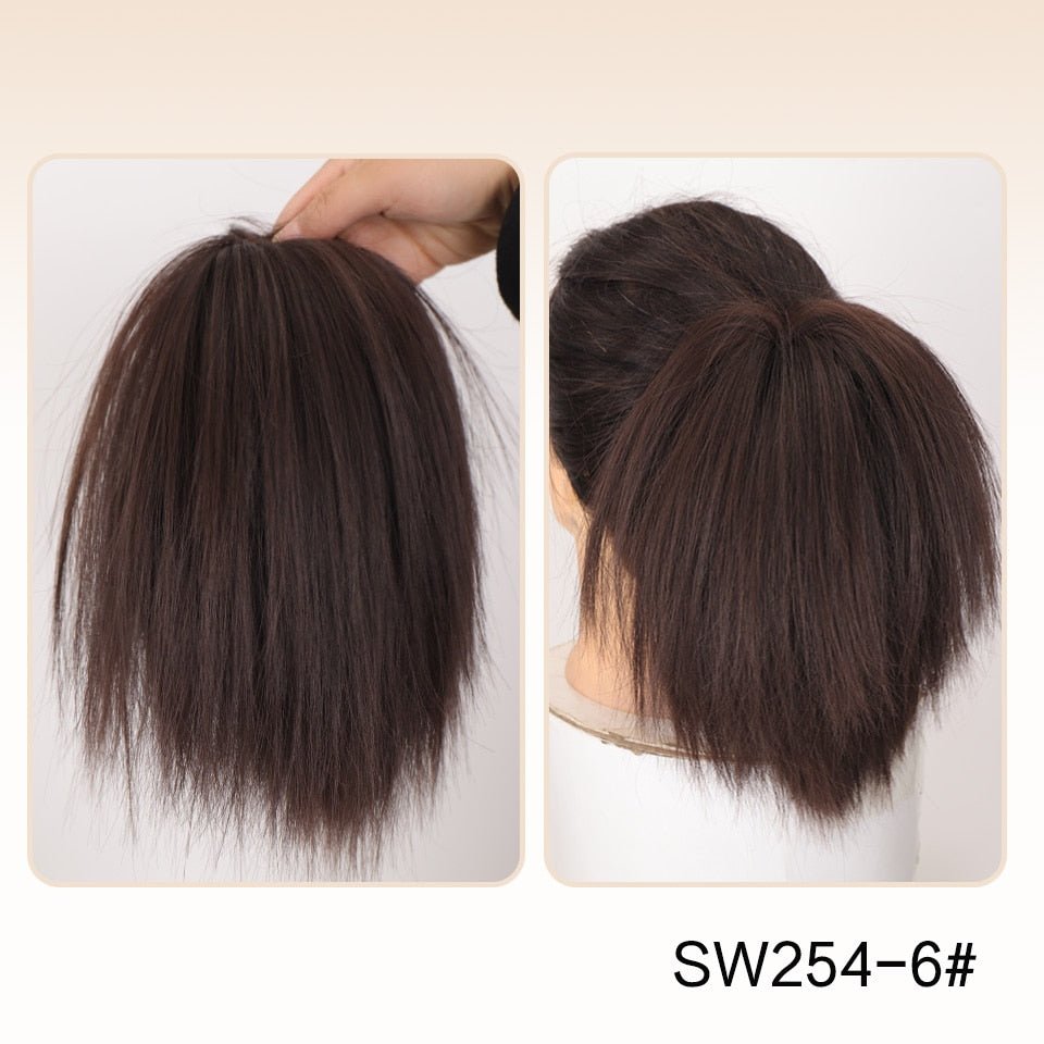 Design: Straight synthetic hair styled into a donut chignon, creating a chic messy bun with effortless volume.
