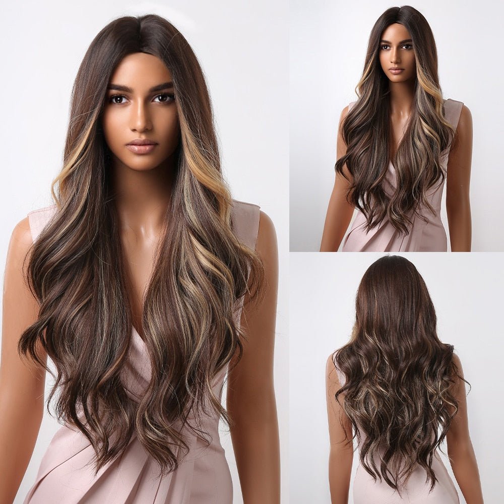 Design: A stunning long synthetic wig with natural beach waves and vibrant highlights, crafted with 150% density for full, voluminous styling.