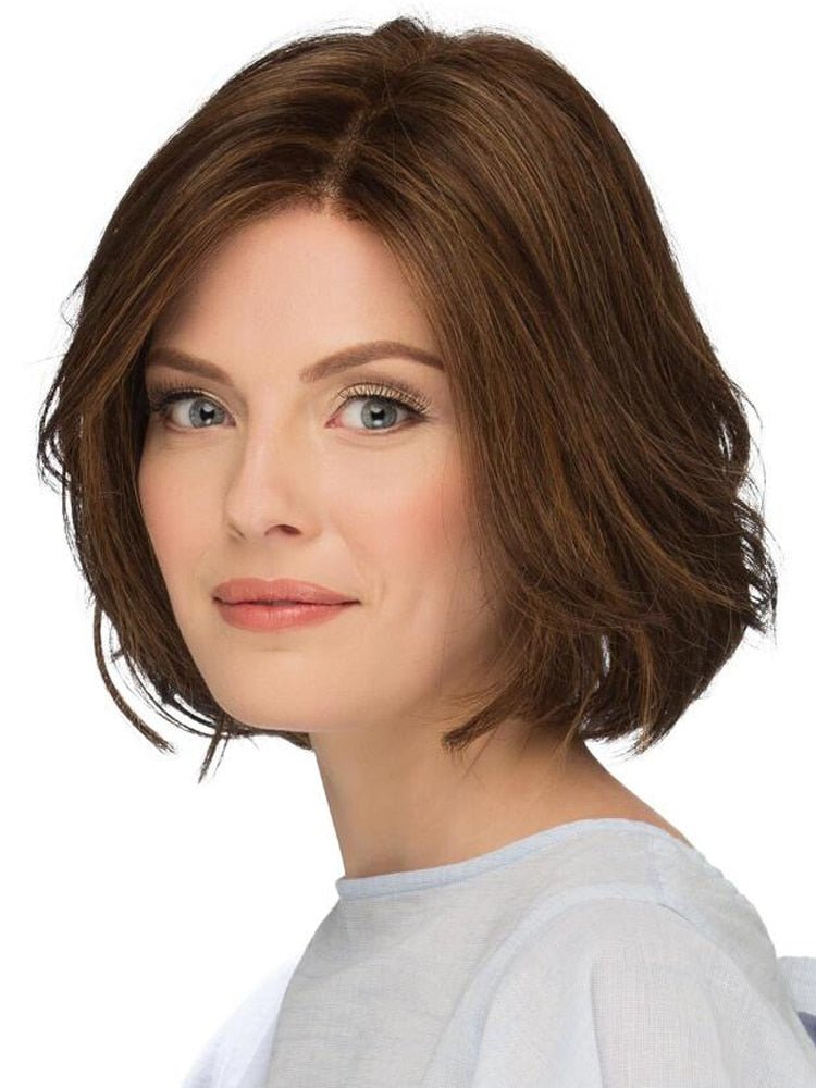 Design: A stylish medium-length bob wig with soft waves and flattering bangs in a natural brown shade. This synthetic hair wig offers a trendy, low-maintenance look perfect for everyday wear.