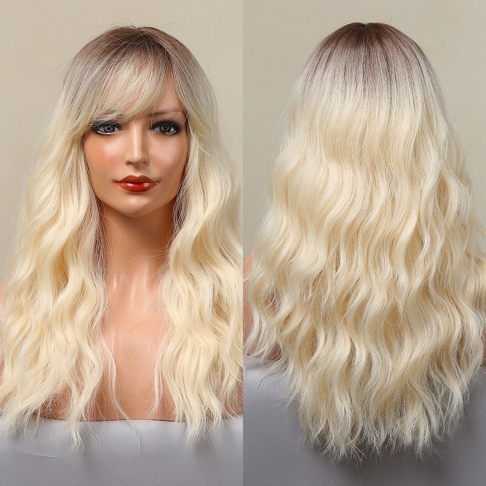 Peluca sintética ondulada de color rubio cremoso y largo ombré