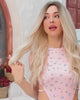 Design: Long wavy blonde synthetic wig with a natural middle part, offering a soft and elegant look.
