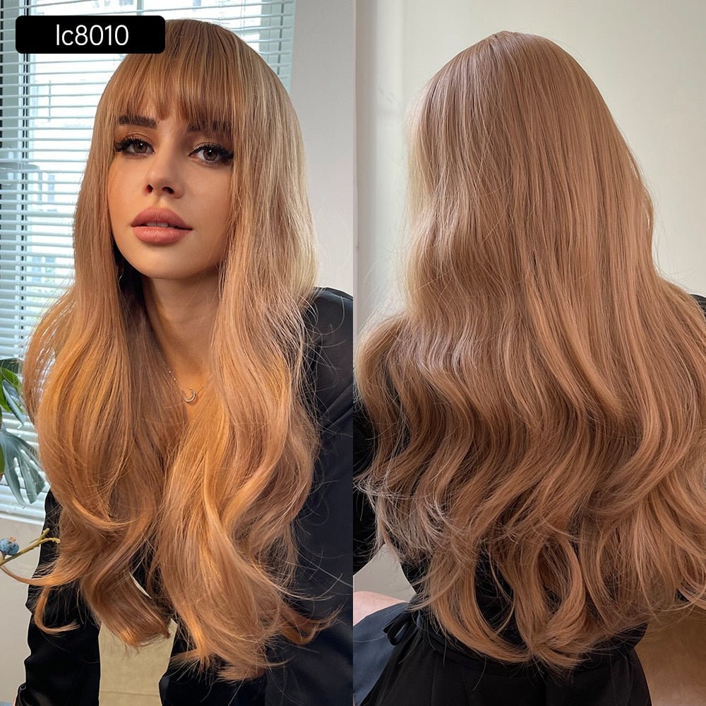 Perruque Synthétique Longue Ondulée Blonde Sable Clair Avec Frange