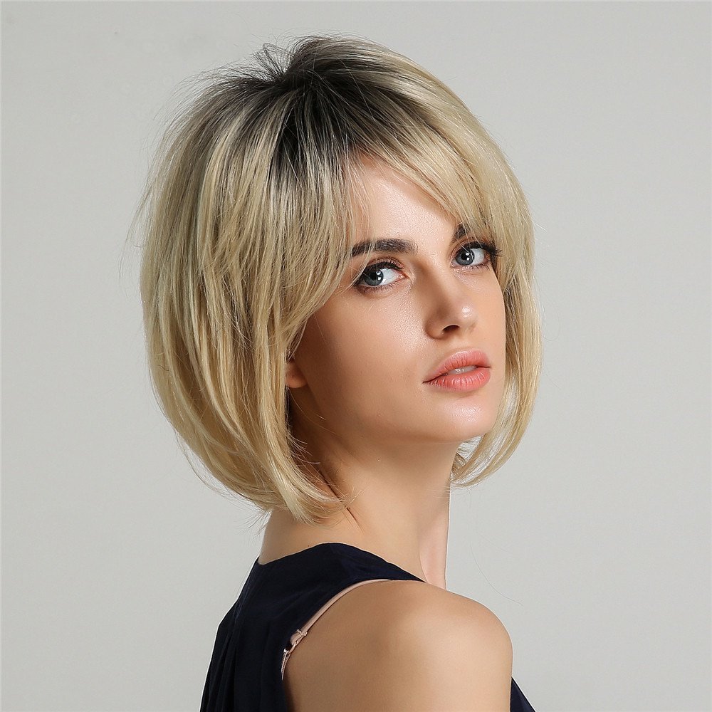 Perruque de mélange de cheveux humains blonde ombrée avec frange