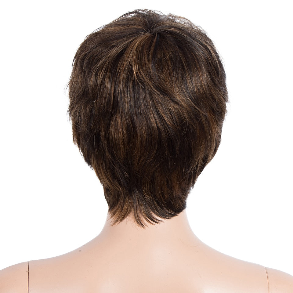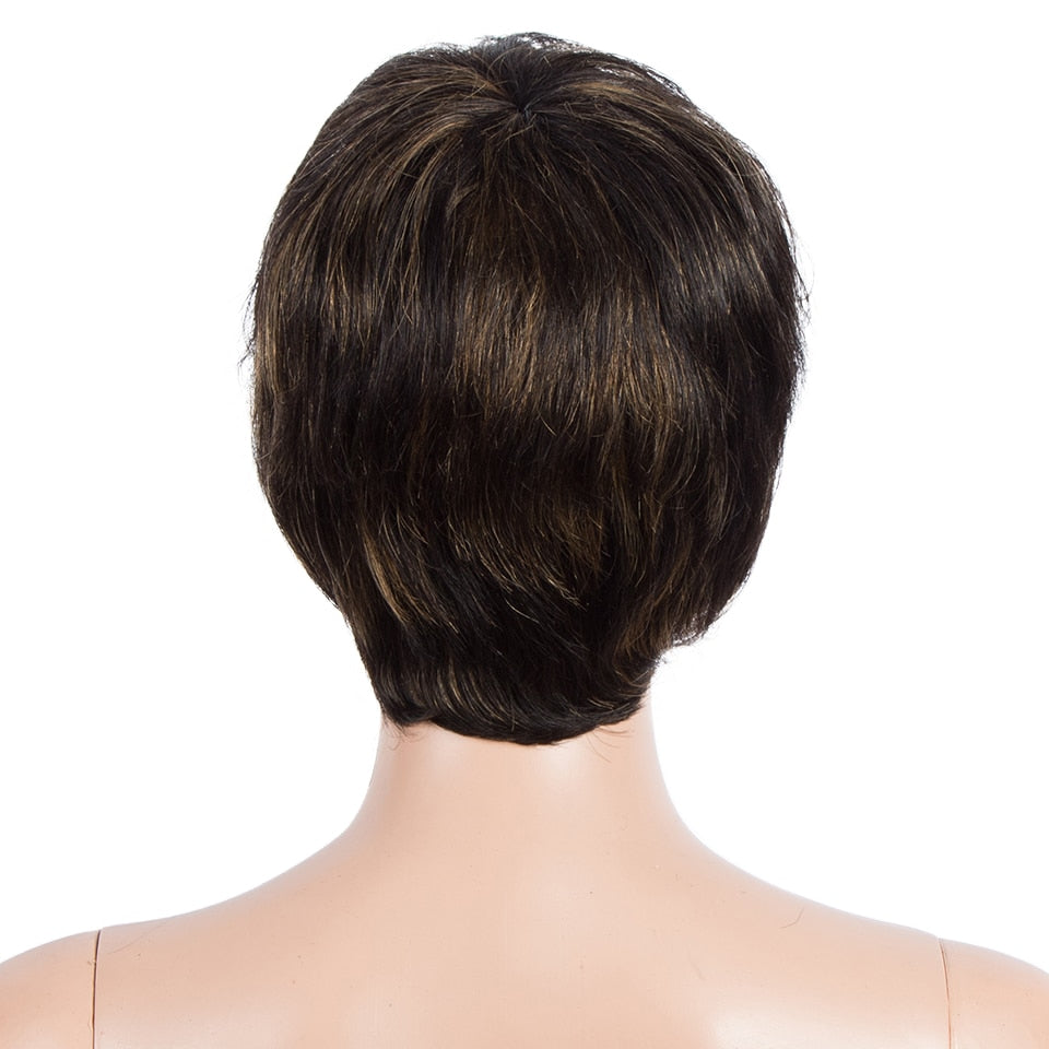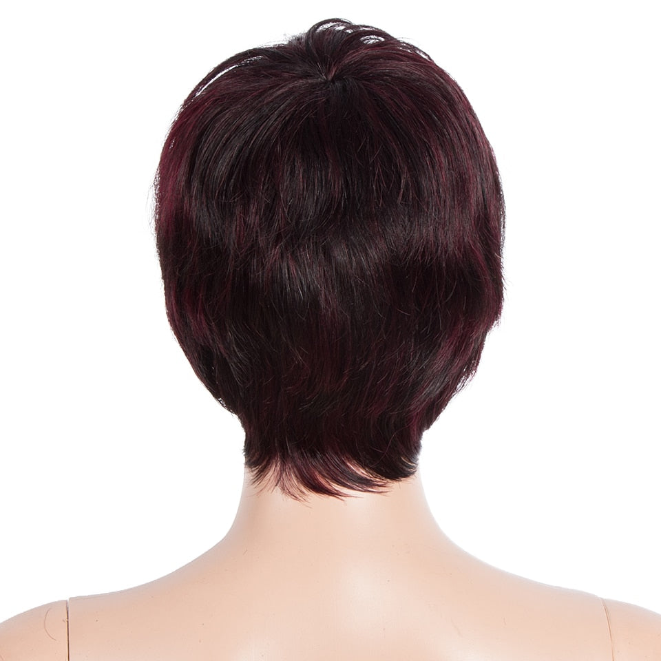 Cheveux humains lisses naturels courts Pixie Cut Ombre perruques colorées