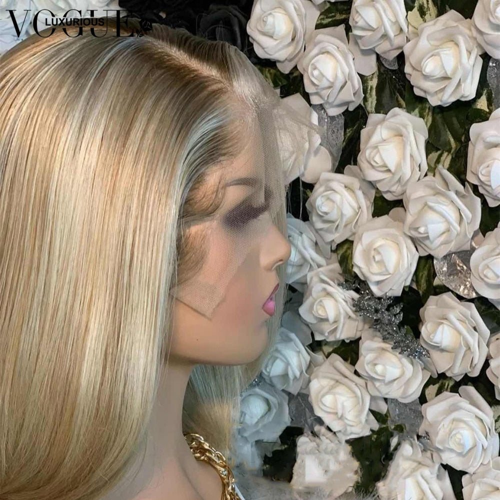 Mettez en surbrillance HD Blond cendré 13x6 Bob perruque droite Lace Front perruques de cheveux humains