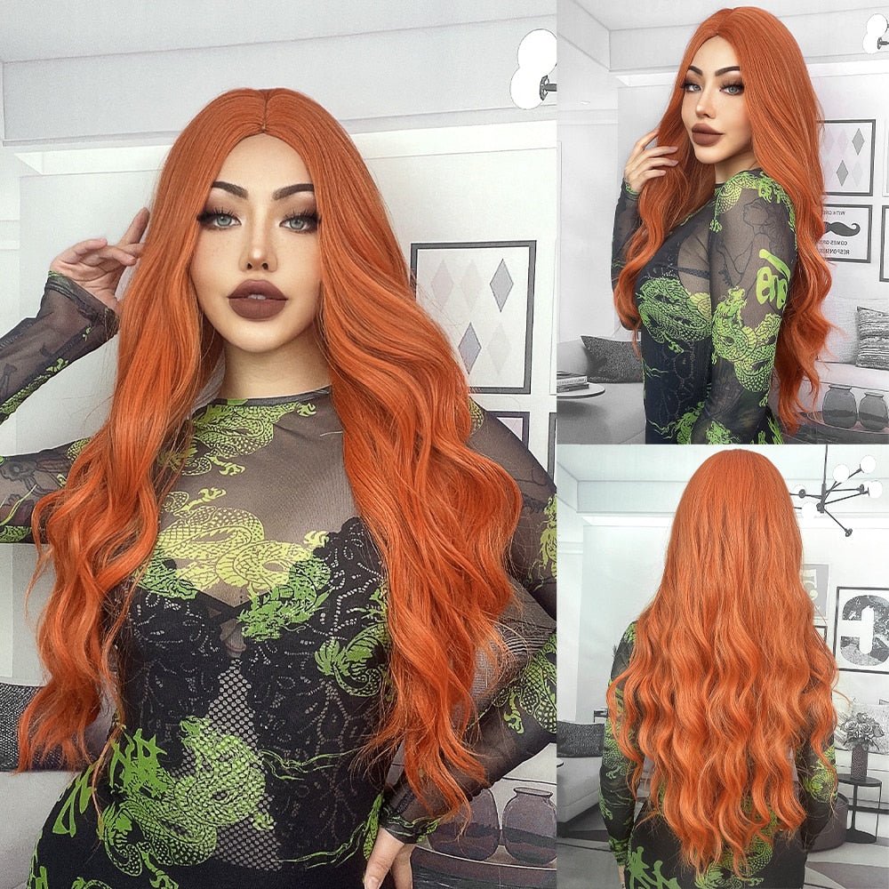 Design: A stunning long wavy wig in a rich ginger hue, crafted from premium high-temperature synthetic fiber for a soft, natural look. Featuring 150% density for voluminous waves and an adjustable cap that fits 21–25 inches comfortably. Lightweight and breathable, it’s perfect for daily wear, parties, cosplay, chemo care, or hair loss coverage.