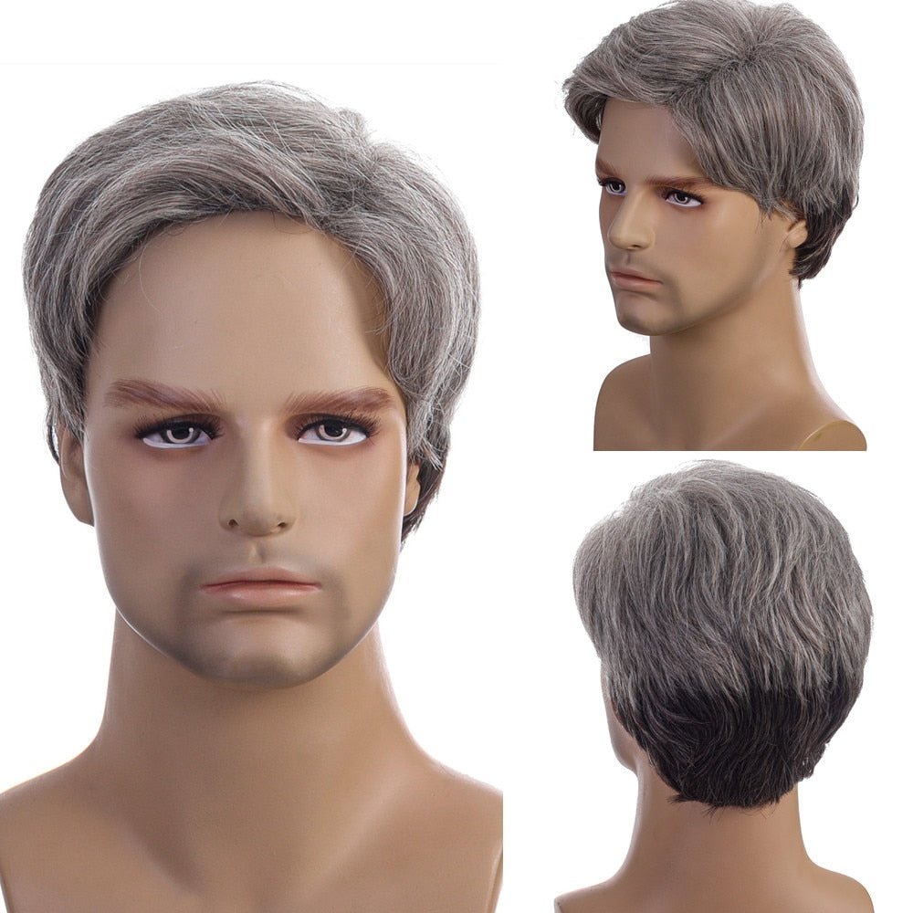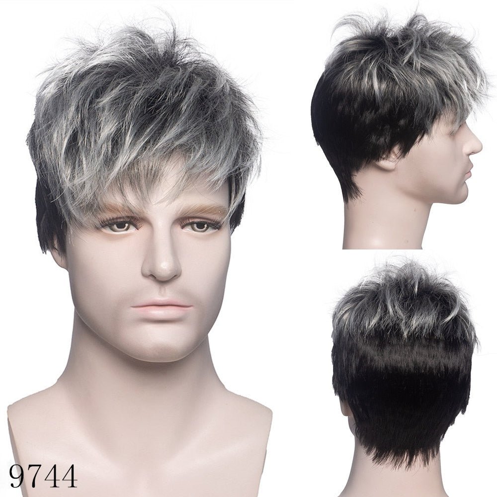 Perruques courtes droites pour hommes avec frange