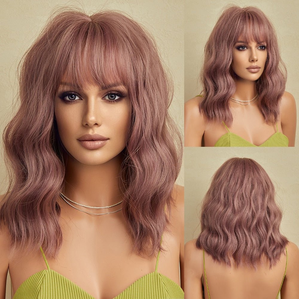 Design: A stylish medium-length bob wig with soft, natural waves and chic bangs for an effortlessly modern and elegant look.
