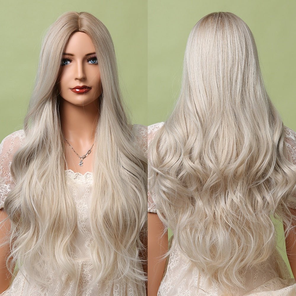 Design: A stunning long synthetic wig in a chic platinum blonde shade with soft, flowing waves. Designed with 150% density for a full, voluminous look.