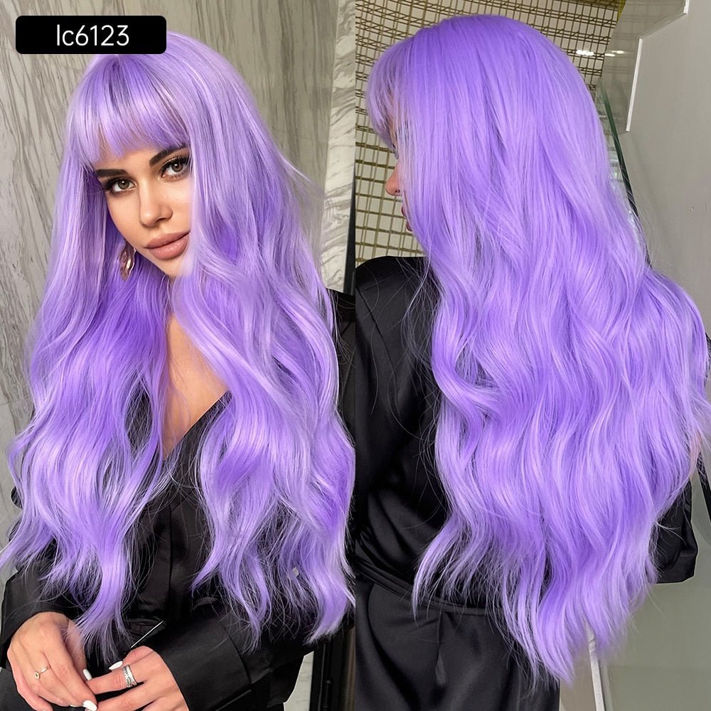 Long Wavy Purple Synthetic Wig – Vibrant & Stylish