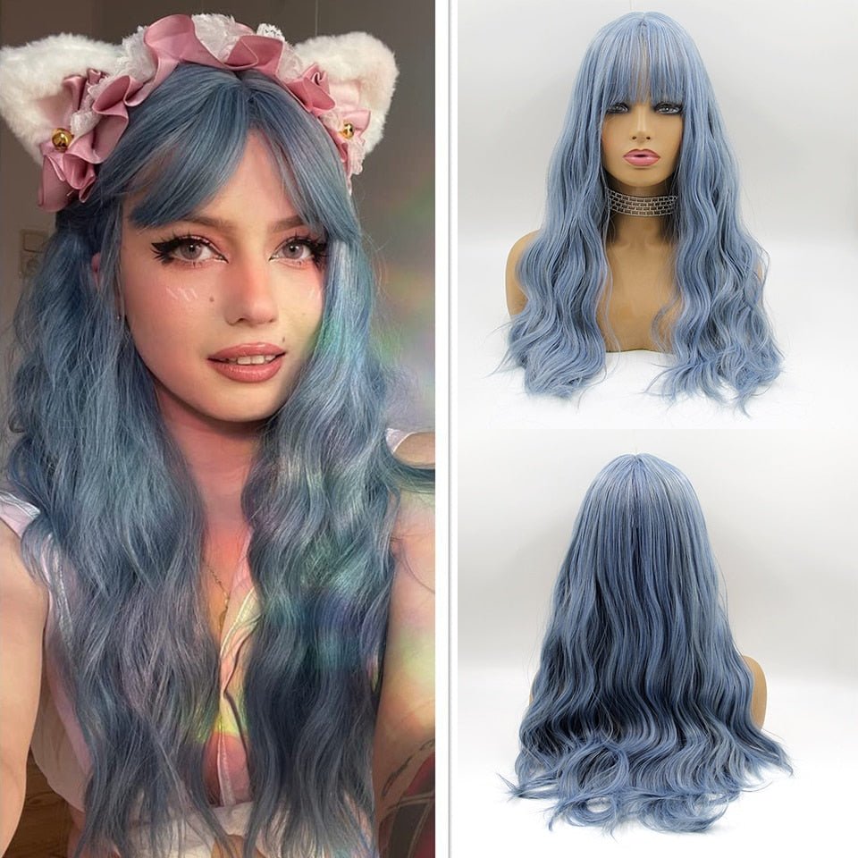 Long Wavy Sea Blue Synthetic Wig
