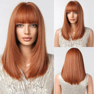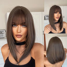 Style Features: Straight texture with bangs, medium-length for a versatile yet chic appearance, and a regular wig design for ease of use.